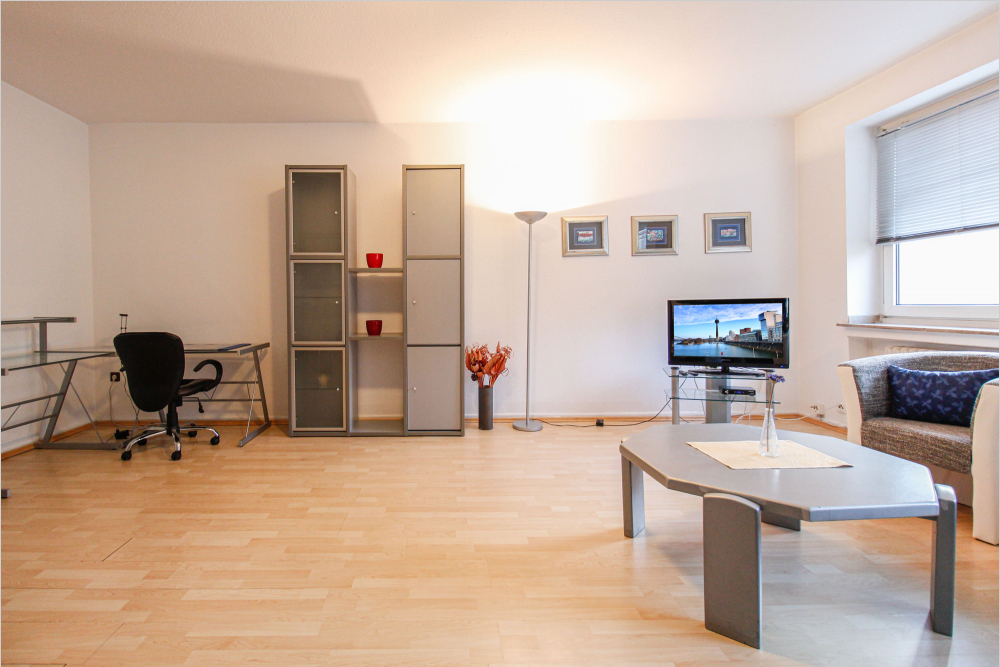 Stadtmitte/ Nähe Kö: Modern und zweckmäßig eingerichtetes Apartment im Zentrum von Düsseldorf. 5 MInuten zu Fuß bis zur Königsallee. Sehr gute Anbindung an öffentliche Verkehrsmittel. Einkaufsmöglichkeiten für den täglichen Bedarf befinden sich in der Nähe. Moderne Einrichtung, großes Wohnzimmer mit Eßecke, Schlafzimmer mit Doppelbett, neue Wohnküche mit Waschmaschine, Kabel TV, Parken im Parkhaus möglich , 3. OG/ Lift.EnEV: Verbrauchsausweis; Mehrparteienhaus; Bj. 1954; 146,0 kWh; Erdgas