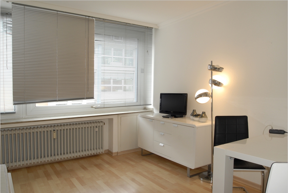 Komplett möbliert / Furnished Accommodation in Düsseldorf Stadtmitte. Helles modern möbliertes Apartment mit Balkon. Wohnschlafraum mit 1,4 m breitem Bett. Waschmaschine im Keller. Die Fotos entsprechen der Einrichtung der Wohnung, sind aber keine Originalfotos! In sehr zentraler Lage mit besten Verkehrsanbindungen und Einkaufsmöglichkeiten gelegen. EnEv: Verbrauchsausweis; Bj.1959; 230,7kWh; Gas