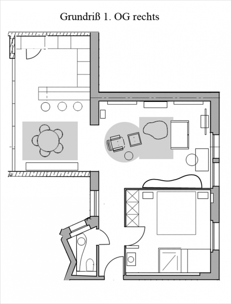 Fully Furnished Accommodation in: Oberkassel. Extravagant, spacious and open-plan 2-room flat in Düsseldorf`s prime location: The flat has high-quality and stylishly selected furnishings with lots of art, antiques and modern classics. Open-plan kitchen/dining area with fully equipped kitchen. Elegant bedroom and modern Asian-style shower and WC. The rooms have high-quality wooden flooring. The high ceilings, characteristic of an old building, give the flat a special charm. The property is located close to Belsenplatz. Luegallee, which is within walking distance, offers all shops for daily needs as well as connections to various public transport services in all directions. There are also many nice cafés and restaurants in the neighbourhood that invite you to linger. The banks of the Rhine are also not far away. Weekly cleaning service available. An underground car park can also be rented for 100 euros per month. Electricity consumption is charged separately.Komplett Möbliert/Furnished Accommodation in: Oberkassel. Extravagante, großzügige und offen gestaltete 2-Zimmer-Wohnung in bester Lage: Die Wohnung verfügt über eine hochwertige und stilvoll ausgesuchte Möblierung mit viel Kunst, Antiquitäten und modernen Klassikern. Offener Küchen-Essbereich mit kompletter Ausstatttung. Elegantes Schlafzimmer und moödernes Duschbad / WC im Asia-Stil. Die Zimmer sind mit einem hochwertigen Holzboden ausgestattet. Die für einen Altbau charakteristischen hohen Decken verleihen der Wohnung einen besonderen Charme. Das Objekt liegt in der Nähe des Belsenplatzes. Auf der fußläufig erreichbaren Luegallee findet man alle Geschäfte für den täglichen Bedarf sowie Anschluß an verschiedene öffentliche Verkehrsmittel in alle Himmelsrichtungen. In der näheren Umgebung gibt es auch viele nette Cafés und Restaurants, die zum Verweilen einladen. Das Rheinufer ist ebenfalls nicht weit weg. Wöchentlicher Reinigungsservice gegen Gebühr kann mitgebucht werden. TG-Platz kann ebenfalls für 100,-Euro monatlich nach Absprache gemietet werden. Der Stromverbrauch ist separat zu zahlen.EnEV: Verbrauchsausweis; Mehrfamilienhaus mit teilweise gewerblicher Nutzung; Bj. 1904; 126 kWh; Erdgas