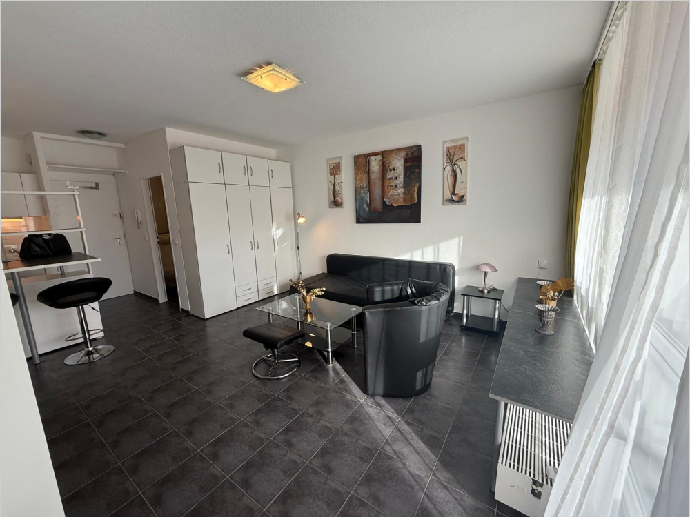 Fully furnished accommodation in Derendorf. Single apartment located at the rear of the buiding ; hence quiet, with a covered balcony. Living room / bedroom with integrated kitchenette and small washing machine are in the apartment. A cellar is also available. An underground parking space in the building can be rented on request; the costs are charged by the building Administrator..The rent includes all costs, including broadcasting fees. There are all kinds of shopping facilities and many restaurants in the immediate vicinity. Good public transport connections and very good infrastructure (Münster Center) - 2 stops to the Derendorf S-Bahn station. Minimum rental period 3 months.Komplett Möbliert/Furnished Accommodation in: Derendorf. Single-Apartment mit überdachtem Balkon - ruhig nach hinten gelegen. Wohn-Schlafraum mit integrierter Pantryküche einer kleinen Waschmaschine in der Wohnung: Internet-/Telefonanschluss zur Selbstanmeldung. Ein Kellerraum steht ebenfalls zur Verfügung. Ein Tiefgaragenstellplatz im Haus kann auf Anfrage angemietet werden, die Kosten erhebt der Betreiber.Die Miete beinhaltet alle Kosten auch die Rundfunkgebühren, Einkaufmöglichkeiten aller Art sowie viele Gastronomieangebote in der direkten Umgebung. Gute öffentliche Verkehrsanbindung und sehr gute Infrastruktur (Münster-Center) - 2 Stationen zur S-Bahn-Haltestelle "Derendorf".Mindestmietdauer 3 Monate.EnEv: Verbrauchausweis; Bj.1973;328 kWh; Erdgas L