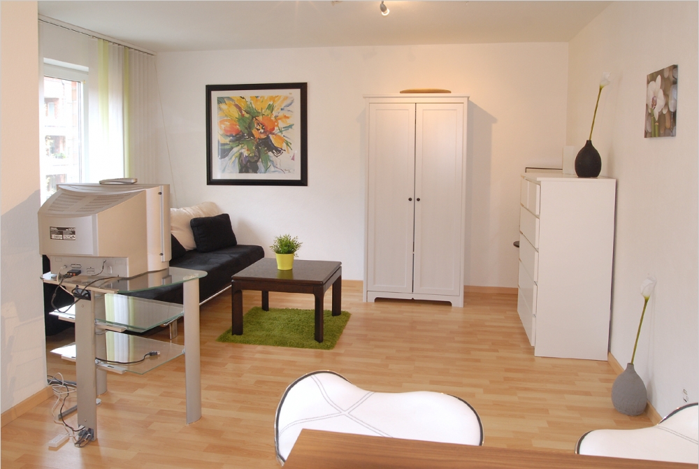 Fully Furnished Accommodation in Neuss/ Innenstadt. Ruhig gelegenes Apartment in Seitenstraße mit moderner Ausstattung. Wohnschlafraum mit offen gestalteter Küchenzeile und Esstheke. Eine Schlafcouch mit richtiger Matratze sorgt für guten Schlaf. Duschbad. Überdachter Balkon. Moderner Flachbildschirm mit Unity-Media Kabelanschluss. Auch ein eigener Kellerraum steht zur Verfügung. Waschmachine in der Wohnung, Trockner im Keller.Ein gemeinschaftlicher Garten kann mitbenutzt werden.In der Miete sind alle Kosten enthalten, auch ein Tiefgaragenplatz im Hause. Alle Einkaufsmöglichkeiten sowie Anschlüsse an den öffentlichen Nahverkehr in fußläufiger Nähe, auch der Hauptbahnhof liegt nur ca. 7 Minuten zu Fuß entfernt. Zur Erholung bieten sich das Erholungsgebiet "Jröne Meerke" sowie der auch nahe gelegenen Stadtpark an.EnEV: Verbrauchsausweis; Mehrfamilienhaus; Bj. 1990; 155 kWh; Erdgas