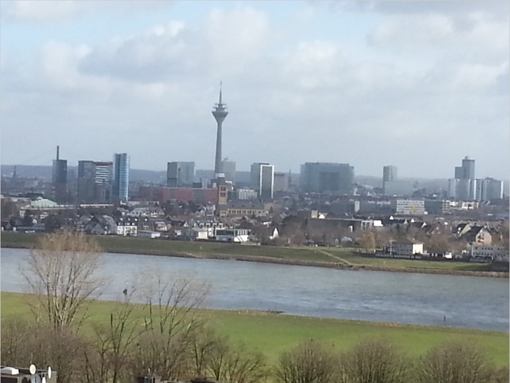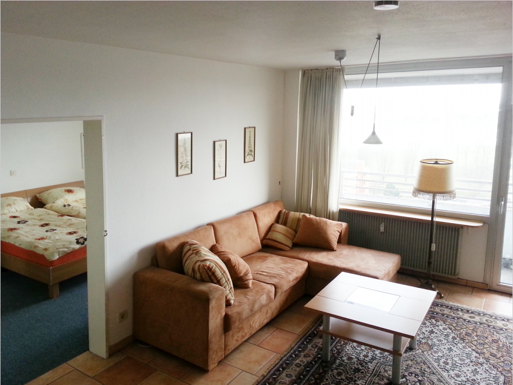 Neuss-Hammfeld: 2-Zimmer-Wohnung mit wunderschönem Blick auf Düsseldorf. Gut geschnittene Wohnung im 13. Stockwerk einer großen, 19-stöckigen Wohnanlage. Fußläufig zur Rheinpromenade, zum Swissôtel und zum Rheinpark-Center. 7 km in die City von Düsseldorf. Von dem rund 8 m langen Balkon bietet sich eine unbezahlbare, phantastische Aussicht auf die wunderschöne Skyline von Düsseldorf. Der Balkon geht über die gesamte Breite der Wohnung und ist sowohl vom Wohn- als auch von Schlafzimmer aus zugänglich. Die Küche ist offen angrenzend an das Wohnzimmer. Gute Ausstattung mit technischen Geräten (2 Fernseher, Standherd mit 4-Flammen-Ceranfeld und Backofen, Senseo-Kaffeemaschine, Mikrowelle, Kühlschrank und Waschmaschine). Bettwäsche, Handtücher und Reinigungsmaterialien werden gestellt. Es gibt Telefon und Internet über den Unitymedia-Anschluss. Das entsprechende Leistungspaket muss der Bewohner individuell zubuchen. Stellplätze in der Tiefgarage sind ausreichend vorhanden und können für 30,00 € / Monat und Stück angemietet werden. Zur Internationalen Schule in Neuß, der ISR International School on the Rhine, sind es nur 6 kmEnEv: Verbrauchsausweis;Bj.1972;164 kWh; Fern-/Nahwärme