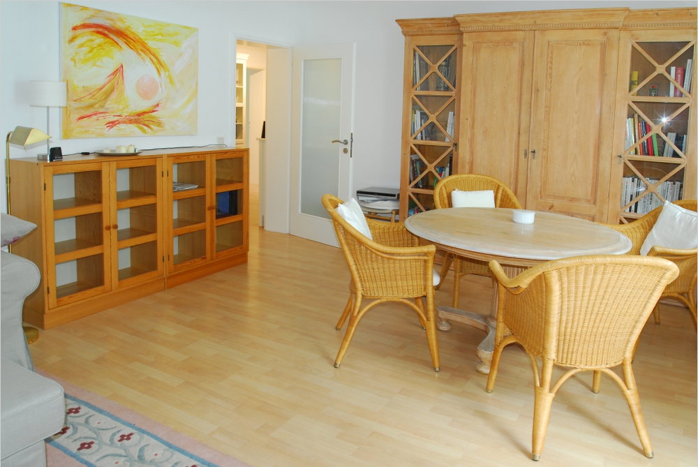 Komplett Möbliert/Furnished Accommodation in: Oberkassel. 4 Zimmer Wohnung in einer ruhigen Nebenstraße mit sehr guter Infrastruktur, mitten im Herzen Oberkassels. Wohnzimmer mit Sitz- und Essbereich, sowie einem Balkon, Schlafzimmer mit 1,8 m breitem Doppelbett und viel Schrankfläche. Ein zweites Schlafzimmer ist mit einem Tagesbett ausgestattet. Das Arbeitszimmer bietet neben einem großen Arbeitsplatz ebenfalls viel Staufläche in einem Schrank. Die Küche ist mit allen Geräten ausgestattet ( auch Spülmaschine, Mikrowelle, Waschmaschine und Trockner). Große Diele. Wannenbad und separates WC. Ein zusätzlicher Kellerraum steht dem Mieter auch zur Verfügung, ebenso wie ein Trockenkeller für Wäsche im Keller. W-LAN. Bettwäsche und Handtücher werden gestellt. Sehr gute Infrastruktur- alle Geschäfte, Restaurants, Cafes, Bahnhaltestellen Richtung Innenstadt- alles ist innerhalb weniger Minuten zu Fuß erreichbar. Auch die schönen Rheinauen mit Blick auf die Düsseldorfer Skyline erreicht man in ca. 5 Minuten Gehzeit. ENEV: Mehrfamilienhaus Baujahr 1962 Heizöl 145,46 kWh