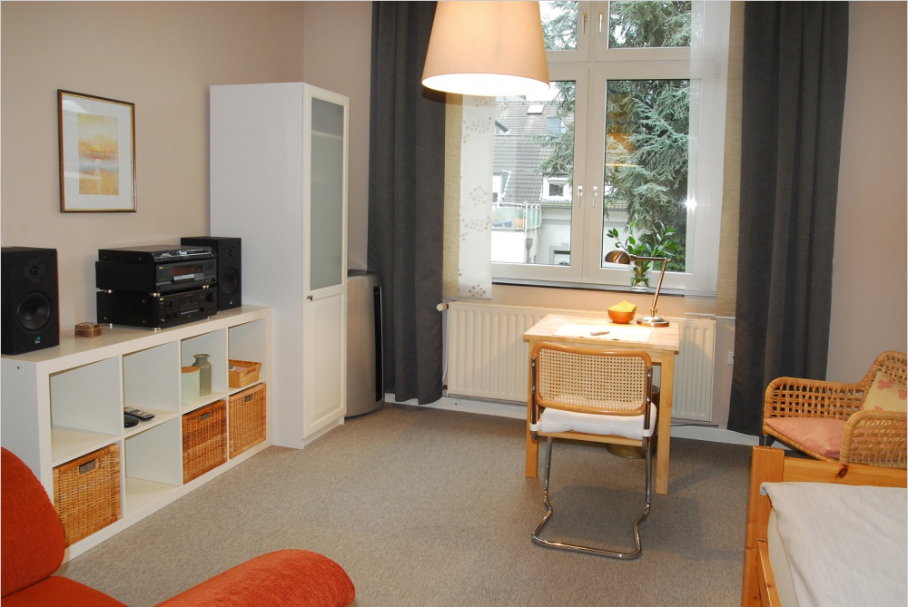 Heerdt/Nähe Seestern/Prinzenpark: Günstiges Zimmer für das kleine Budget an Nichtraucher/in zu vermieten. Ruhig zur Gartenseite gelegener Wohnschlafraum mit Einzelbett. Sonnenschutz vor den großen Altbaufenster, der mit einer Fernbedienung bequem zu bedienen ist. Flatscreen TV 39". Altbau mit hohen Decken und großer Glasfront zur eigenen Diele, die mit einer Schiebetür verschlossen werden kann. Das Badezimmer mit Dusche ist auch gleichzeitig Küche mit Mikrowelle, Kühlschrank, Nespresso-Maschine. W-LAN. Waschmaschine und Trockner zur gemeinschaftlichen Nutzung im Keller. Die Toilette befindet sich auf dem Flur (2 Meter vom Apartment entfernt) und wird mit einer anderen Mieterin geteilt.Alle Geschäfte für den täglichen Bedarf auf dem nahe gelegenen Nikolaus- Knopp- Platz, ca. 2 Minuten zu Fuß entfernt. Dort befinden sich auch Haltestellen des öffentlichen Nahverkehrs. Schnelle Wege sowohl mit Bahnen als auch dem Auto nach Oberkassel oder auch in die City. Zur Erholung erreicht man in ca. 8 Minuten zu Fuß die Rheinauen, auf denen man auch mit dem Fahrrad in die Innenstadt oder den Hafen fahren kann. EnEV: Verbrauchsausweis, Mehrfamilienhaus, Bj.1906; 169,7 kWh, Erdgas, Strom- Mix