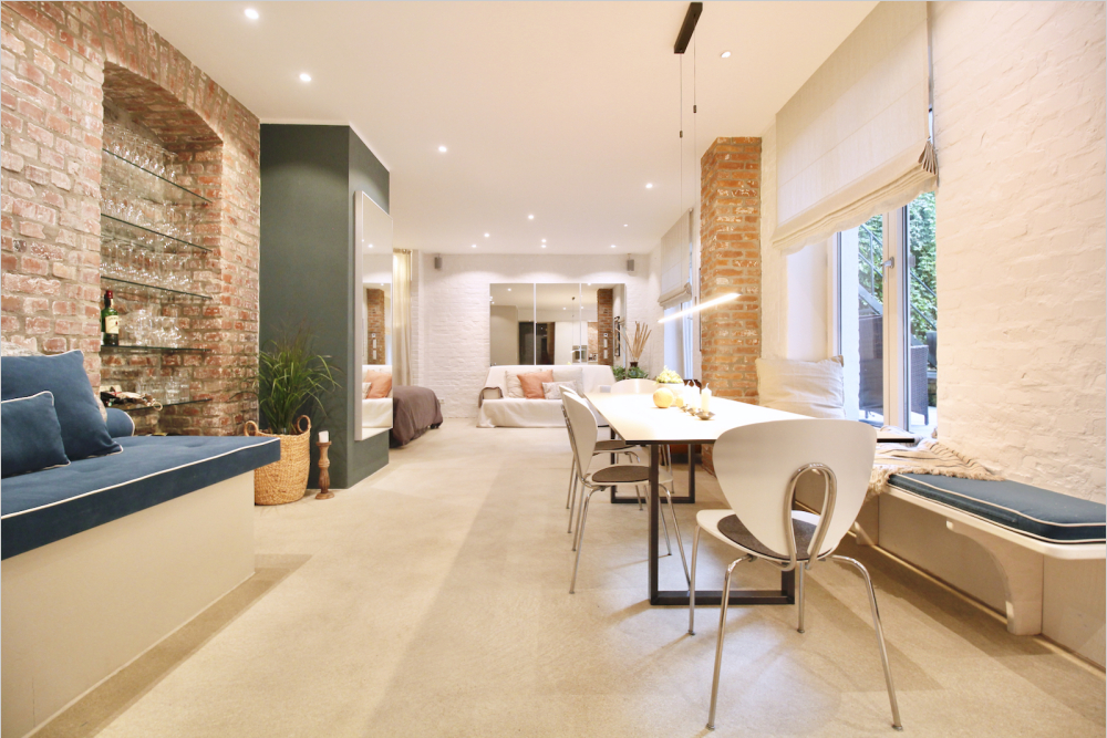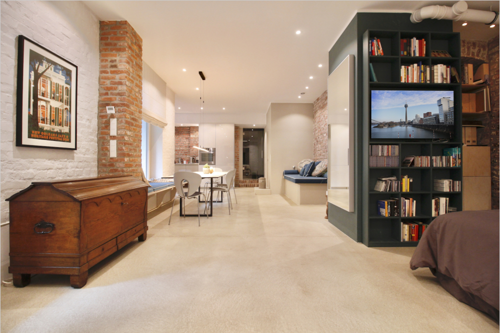 Unterbilk/ Medienhafen: Stylische Loft- Wohnung (genannt " Loretto") im Gartengeschoss mit vielen hochwertigen Extras. Ruhig gelegen zur Gartenseite hin. Offener Wohn/Schlafbereich mit Top-Ausgestatteter hochwertiger Küche. Terasse mit Gartenblick und Garten mit altem Baumbestand. Modernes Duschbad mit Regenwaldusche. Waschmaschine und Trockner befinden sich in der Küche. Miete inklusive monatlicher Grundreinigung, Internet, Strom extra.Die Wohnung liegt im Umfeld des inoffiziellen Versorgungszentrums von Unterbilk, der Einkaufsmeile Lorettostraße, mit Shops des täglichen Bedarfs- exklusiven Designer-Läden und bunter Szene Gastronomie. Der Medienhafen ist in fußläufiger Nähe, ebenso wie die Rheinufer- Promenade. Kurze Wege zur KÖ und in die Innenstadt/ Altstadt, auch mit öffentlichen Verkehrsmitteln.EnEV: Verbrauchsausweis; Mehrfamilienhaus; Bj. 1912; 125,8 kWh; Erdgas