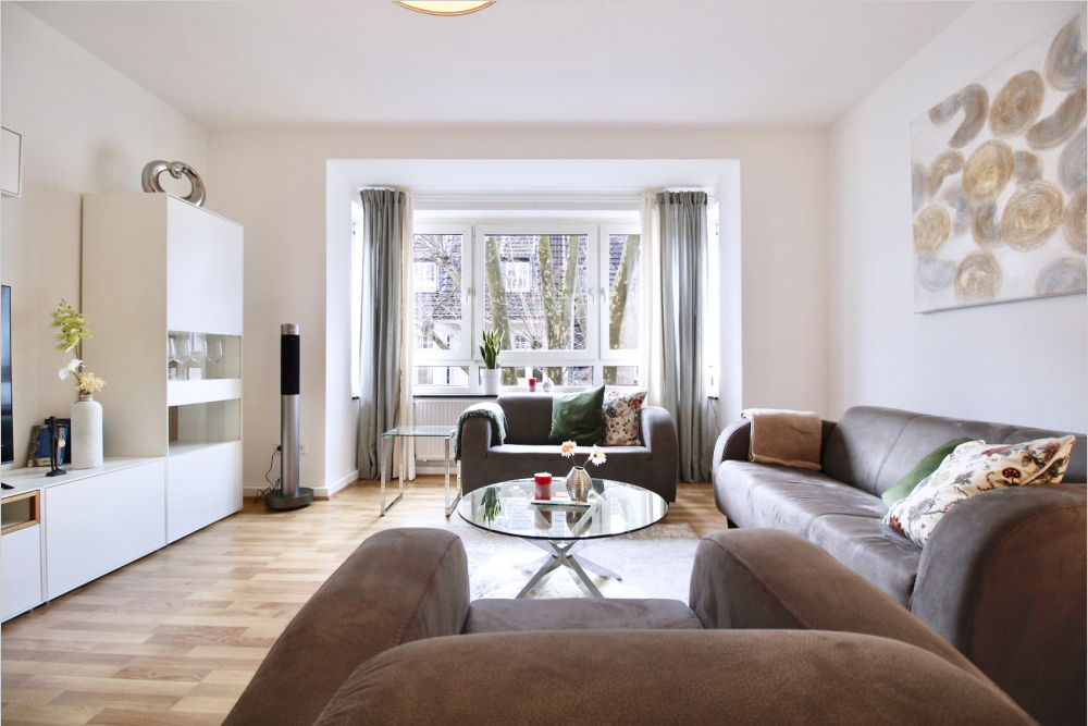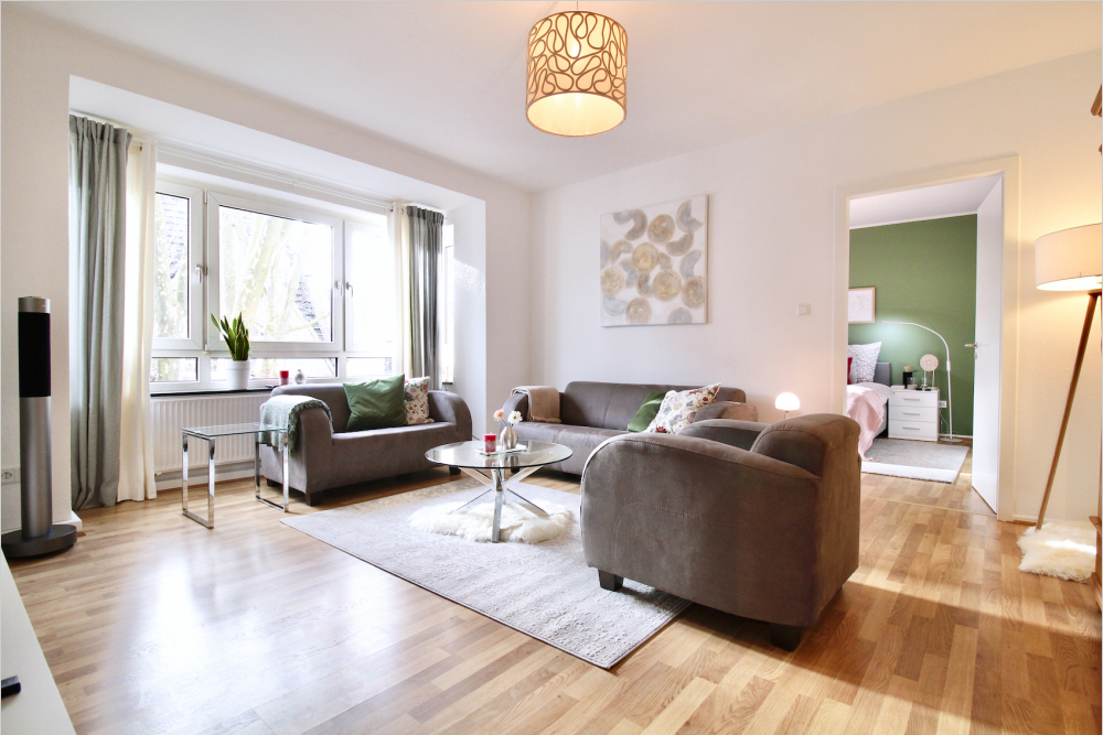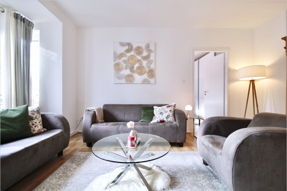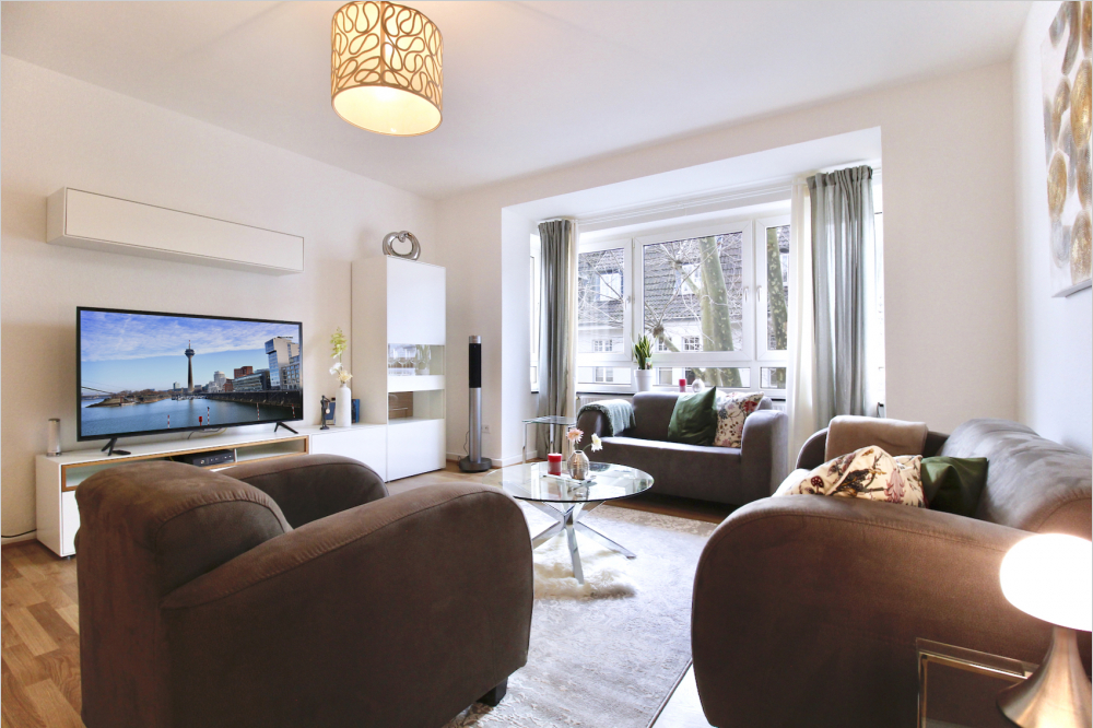 Komplett Möbliert/Furnished Accommodation in: Oberkassel. Stilvoll eingerichtete 2 Zimmer Wohnung im Herzen vom Düsseldorfer Premium Viertel. Das Schlafzimmer verfügt über einen großen Kleiderschrank sowie einen TV mit Schreibtisch. Das Wohnzimmer lädt ein zum gemütlichen Entspannen mit viel Sitzgelegenheit für Sie und Ihre Gäste. Das in hellen warmen Tönen gehaltene Badezimmer verfügt über eine moderne geräumige Dusche und ein Fenster. Die Küche ist auf neustem Standard vollausgestattet mit sämtlichen Geräten und bietet Platz für einen Essbereich. Das Objekt liegt in ruhiger Lage in direkter Nähe zum Rhein bis zu dem Sie nur 5 Minuten brauchen. Um das Objekt herum befinden sich zahlreiche Cafés und Einkaufsmöglichkeiten. Auch der Anschluss in die Düsseldorfer Innenstadt oder nach Neuss/Krefeld ist in 3 Minuten erreichbar. Die U-Bahnen und Busse verkehren in 5-Minuten-Takt.Die EnEv Daten liegen aktuell noch nicht vor, diese werden bei der Besichtigung nach gereicht.