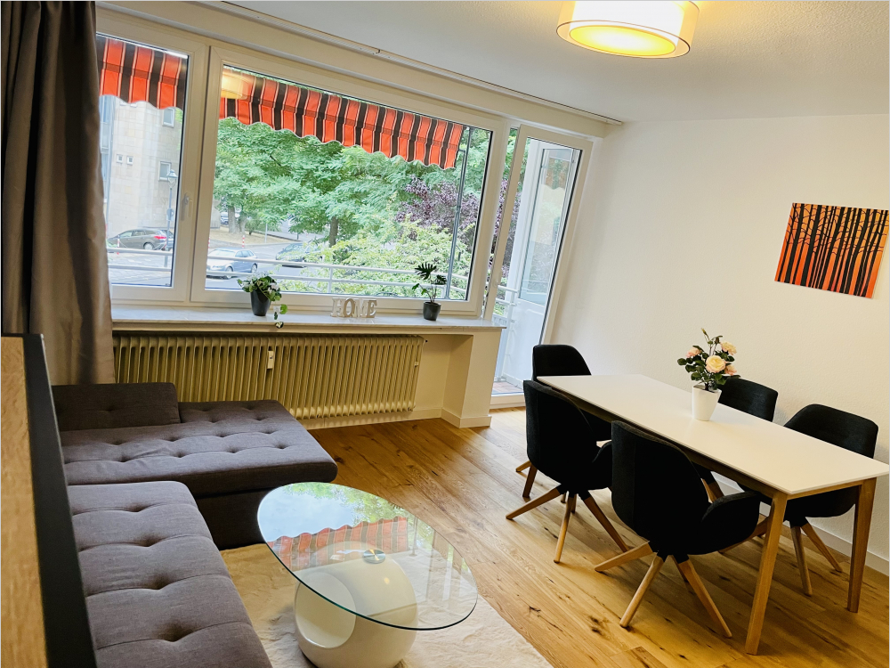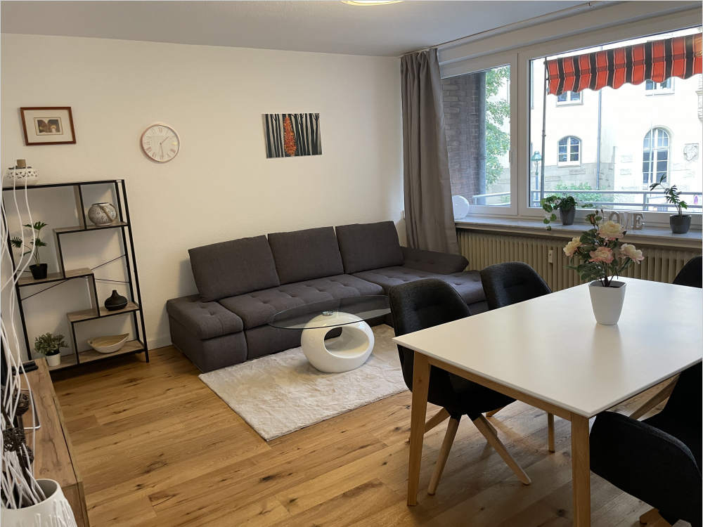 Komplett Möbliert/Furnished Accommodation in: Oberkassel. 2 bedroom Apartment. 2 Schlafzimmer Wohnung mit Balkon in ruhiger Wohnstrasse. Renoviert und neu eingerichtet im August 2023. Walking distance zur Einkaufmeile Luegallee mit allen Geschäften für den täglichen Bedarf. Die ausgedehnten Rheinauen mit dem Blick auf die Altstadt liegen ebenfalls in Fußnähe. Oberkassel als die älteste gehobene Trendlage in Düsseldorf bietet eine große Auswahl an bunter Szene und gehobener Gastronomie und viele Shops. Die vielen Denkmal geschützten Häuser und kleinen Gassen vermitteln ein bisschen "Berliner Flair". Kurze Wege mit öffentlichen Verkehrsmitteln in die City.EnEV: Verbrauchsausweis; Mehrfamilienhaus; Bj.1960; 203 kWh; Heizöl