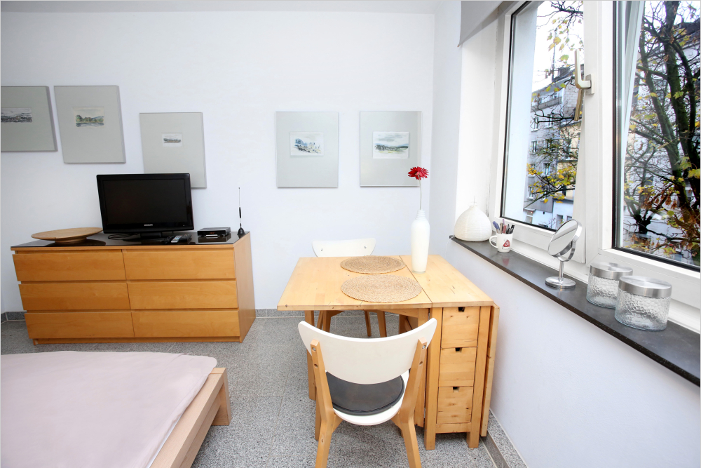 Komplett Möbliert/fully furnished budget accommodation in Friedrichstadt. Micro Budget Apartment in the Center. Short ways/walking distance to Media Harbour/Altstadt/Königsallee. Helles Apartment im Zentrum fürs kleine Budget. Doppelbett, Pantryküche und Badewanne vorhanden. Kurze Wege zur KÖ oder in den Medienhafen. Miete zzgl. Strom. Ein Waschsalon befindet sich um die Ecke! ENEV: Verbrauchsausweis, MFH, Bj 1961, 135 kw/H, Fernwärme