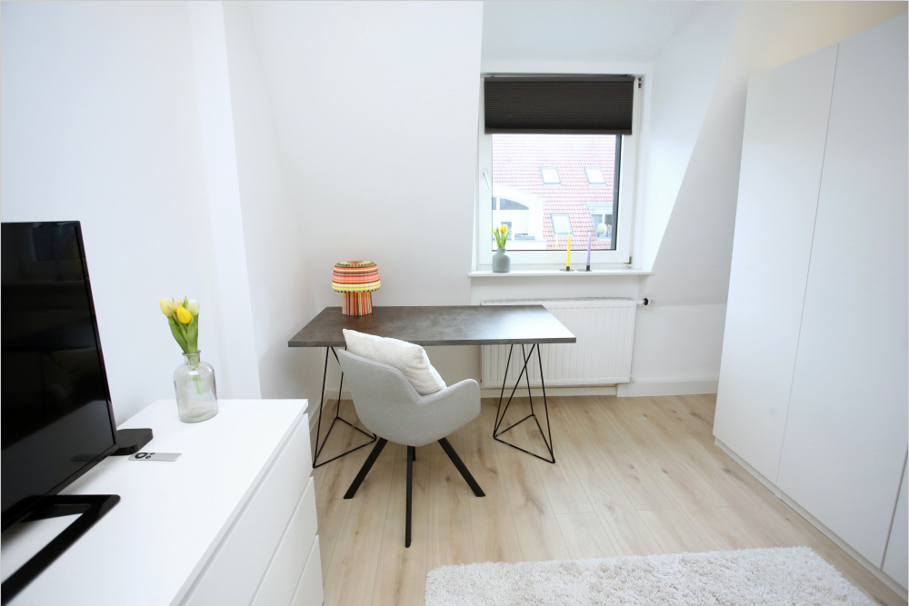 Komplett Möbliert/Furnished Accommodation in Pempelfort. High-quality furnished business apartment in a quiet yet central location in Pempelfort, with a double bed, Wi-Fi, and a desk. A laundromat and shopping options are within walking distance. Public transportation is within walking distance, offering a quick connection to the city center and the main train station (S-Bahn). By car, the "Mörsenbroicher Ei" traffic junction is easily accessible, providing connections to the A52 towards Essen / Mönchengladbach and the A44 towards the airport. For walks, both the Hofgarten and the Zoopark are easily reachable.Hochwertig möbliertes Business-Apartment in ruhiger, aber dennoch zentraler Lage Pempelforts mit Doppelbett, W-Lan und einem Schreibtisch. Ein Waschsalon sowie Einkaufsmöglichkeiten befinden sich in fußläufiger Distanz. Öffentliche Verkehrsmittel liegen in walking distance und bieten eine schnelle Verbindung in die City und zum Hauptbahnhof (S-Bahnhof). Mit dem Auto erreicht man schnell den Verkehrsknotenpunkt "Mörsenbroicher Ei", wo man Anschluss an die A 52 Richtung Essen / Mönchengladbach und an die A 44 Richtung Flughafen hat. Für Spaziergänge etc. sind der Hofgarten und der Zoopark gleichermaßen gut erreichbarDie EnEv Daten liegen aktuell noch nicht vor, diese werden bei der Besichtigung nach gereicht.