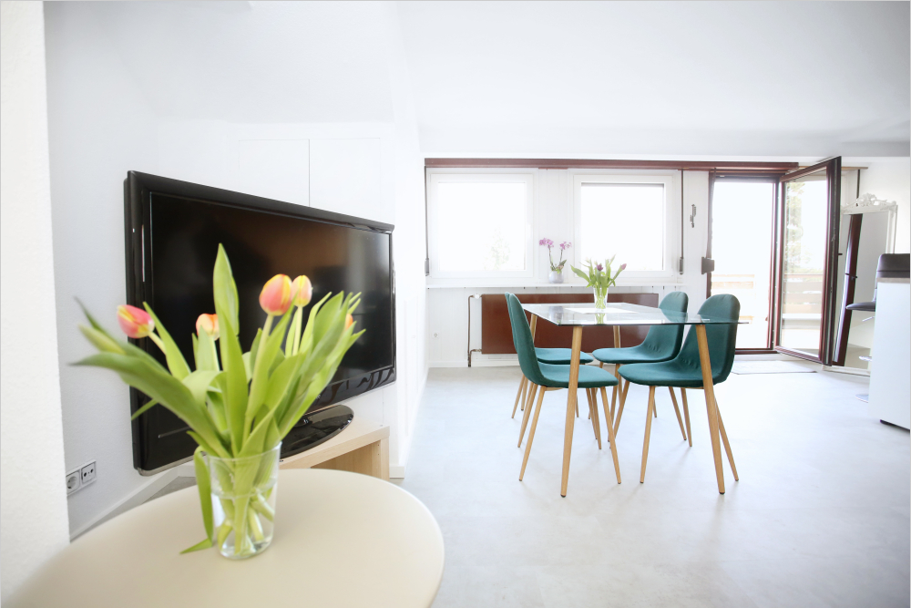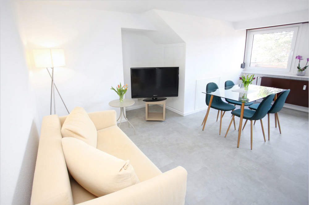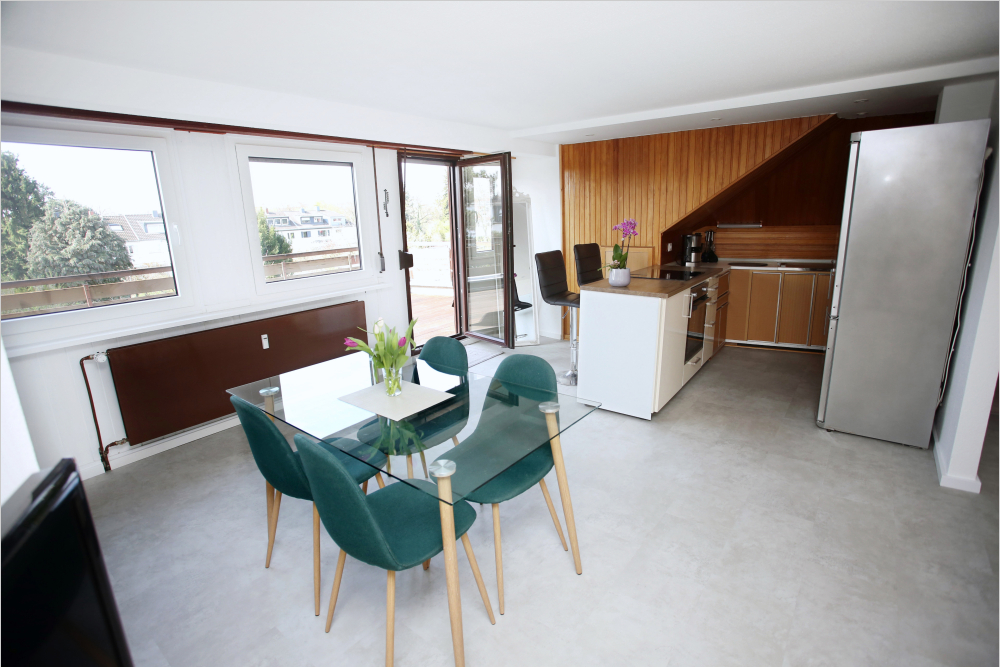 Fully Furnished Accommodation in Unterrath: 2-room top floor apartment with an open-plan living kitchen . The house is situated on a quiet side street. The bedroom features a 1.60 m wide bed and a shower bathroom. The spacious balcony offers a lovely view of the garden. Daily shopping needs can be reached within about 2 minutes on foot, as can public transport stops (tram and bus). The apartment has good connections to public transport. The airport can be reached in 10 minutes on foot, yet there is no aircraft noise in the residential area. The airport, trade fair, and highways A44 and A52 are quickly accessible. For recreation, green spaces are easily reachable in all directions, and the Unterrath swimming pool is only 23 minutes on foot.The rent includes a flat-rate electricity charge of €100. Rental is exclusively for single persons only single persons, no couples!Electricity. Energy certificate: consumption-based; multi-family end-terrace house; built in 1950; 188.4 kWh; natural gas E, electricity mix.Voll möblierte Wohnung. Fully Furnished Accommodation in: Unterrath: 2 Zimmer Dachgeschoßwohnung mit offener Wohnküche in ruhiger Nebenstraße. Schlafzimmer mit 1,60 m breitem Bett, Duschbad. Es bietet sich ein schöner Ausblick in den Garten vom großzügigen Balkon.. Einkaufsmöglichkeiten für den täglichen Bedarf erreicht man in ca 2 Minuten zu Fuß, ebenso wie die Haltestellen des öffentlichen Nahverkehrs (Straßenbahn und Bus), gute Verkehrsanbindungen an öffentliche Verkehrsmittel. Den Flughafen erreicht man in 10 Minuten zu Fuß, jedoch kein Fluglärm in der Wohnumgebung. Flughafen, Messe, A 44 und A 52 sind schnell erreichbar. Zur Erholung erreicht man schnell Grünflächen in allen Richtungen, auch das Unterrather Schwimmbad ist nur 2-3 Minuten zu Fuß entfernt. Der Mietpreis versteht sich inklusive einer Stromkostenpauschale von 100,- Euro. Vermietung ausschließlich an Einzelpersonen - only single persons, no couples! Strom. EnEV: Verbrauchsausweis; Mehrfamilienreiheneckhaus; Bj. 1950; 188,4 kWh; Erdgas E, Strommix