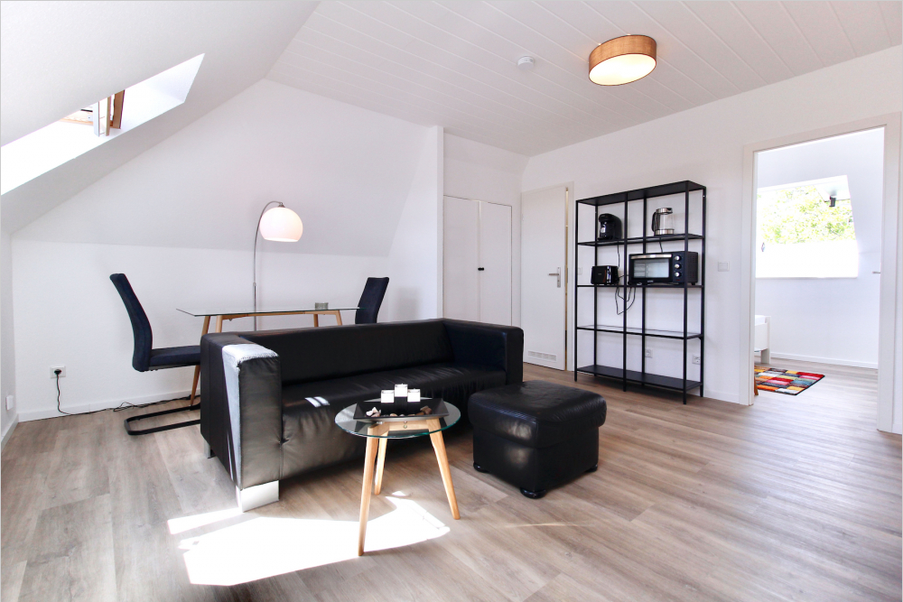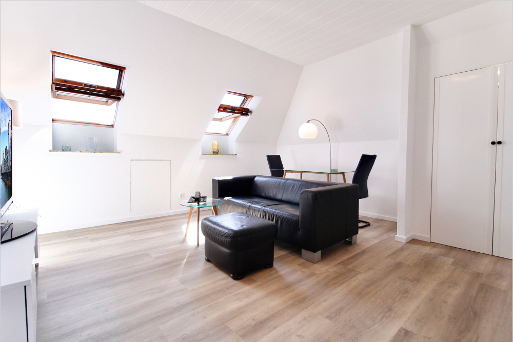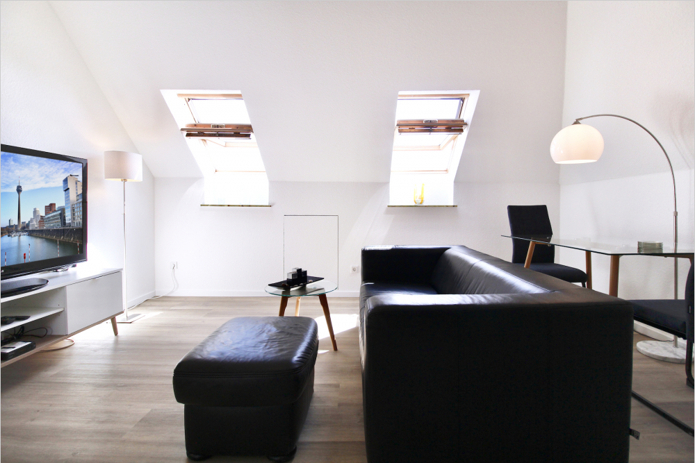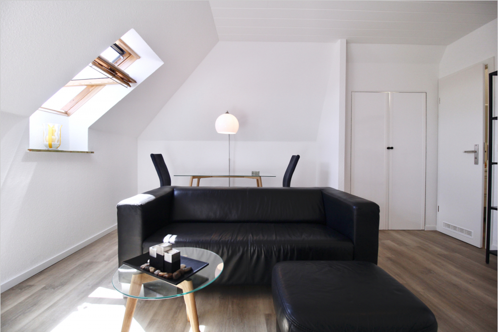 Komplett Möbliert/Furnished Accommodation in: Benrath. Gemütliches Dachgeschoss-Apartment mit zwei separaten Räumen: Wohnzimmer mit Ledersofa, Tisch, Fernseher und Küchenutensilien (Wasserkocher, Toaster, Kaffeemaschine, Kühlschrank mit Gefrierfach und Mini-Backofen) und Schlafzimmer mit Einzelbett und geräumigem Schrank. Ein Klappbett kann ebenfalls zur Verfügung gestellt werden. W-Lan (sehr schnell, 250 MBit) ist ebenso vorhanden wie eine Waschmaschine im Keller zur exklusiven Nutzung. Der Fernseher läuft über DVBT - der Zugang zu privaten Programmen kann vom Mieter über WAIPU optional gebucht werden. Der Mietpreis von 775,00 Euro versteht sich inklusive 80 Euro Strom-Vorauszahlung, die am Ende der Mietzeit verrechnet wird. Es wird mit Strom geheizt.Vermietung ausschließlich an Einzelpersonen - bevorzugt Wochenendpendler. Only single persons! Weekend commuters are preferred.U-Bahn, Straßenbahn und S-Bahn liegen auch in der direkten Umgebung, mit welchen man die Innenstadt und den Düsseldorfer Hbf gut erreichen kann.EnEv: Verbrauchsausweis, Mehrfamilienreihenmittelhaus, Strom-Mix + Erdgas-LL, Bj. 1958, 107,2 kwH.